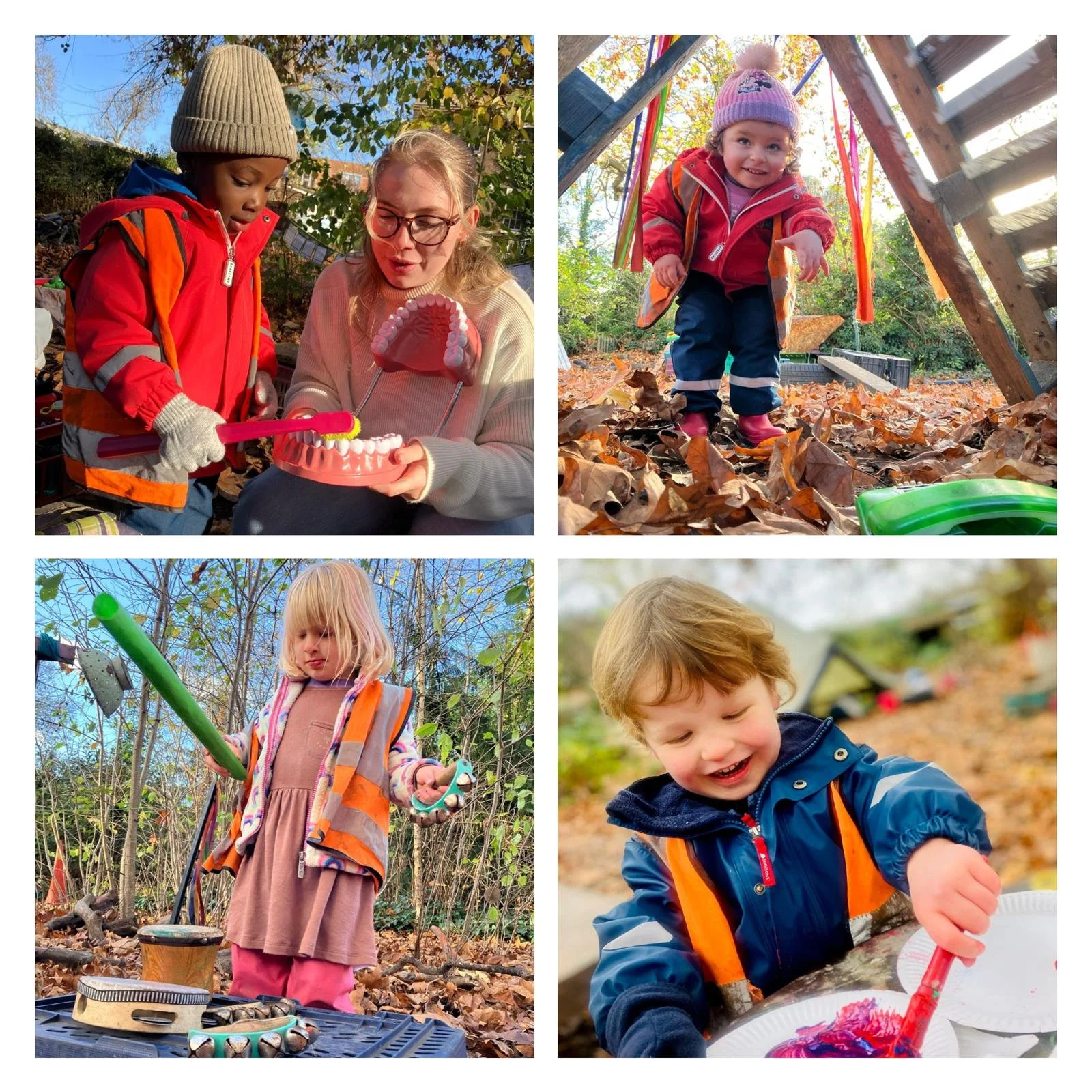 Painting, sensory goop, weaving, playdough and instant photography have kept our little fingers and our curious minds engaged. Our music corner has also been very jolly as we have sung our favourite songs and beat the rhythm with sticks upon the logs.