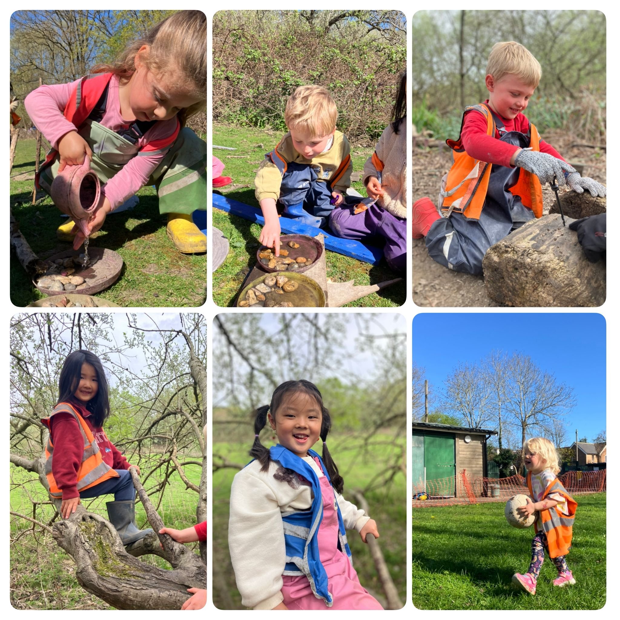 Taking inspiration from the warm weather and a documentary about bees that some of our educators had watched, we learnt what we can do to help the bees! Earlier this year, we already planted some wildflower seeds to help create habitats for them and this week, we focused on water and a bee hotel for mining bees. We gathered stones on our adventures to and from the car park, and placed them in a shallow dish. Here we then poured water into the dish so the bees could drink and wash themselves. Bees can stand on the stones so they aren’t trapped by the water which would cause them to struggle to get out. Another day, we connected this to a tool work activity by drilling holes in soft wood logs for a place where mining bees can go. We’ve loved learning all about bees and can’t wait for some visitors!