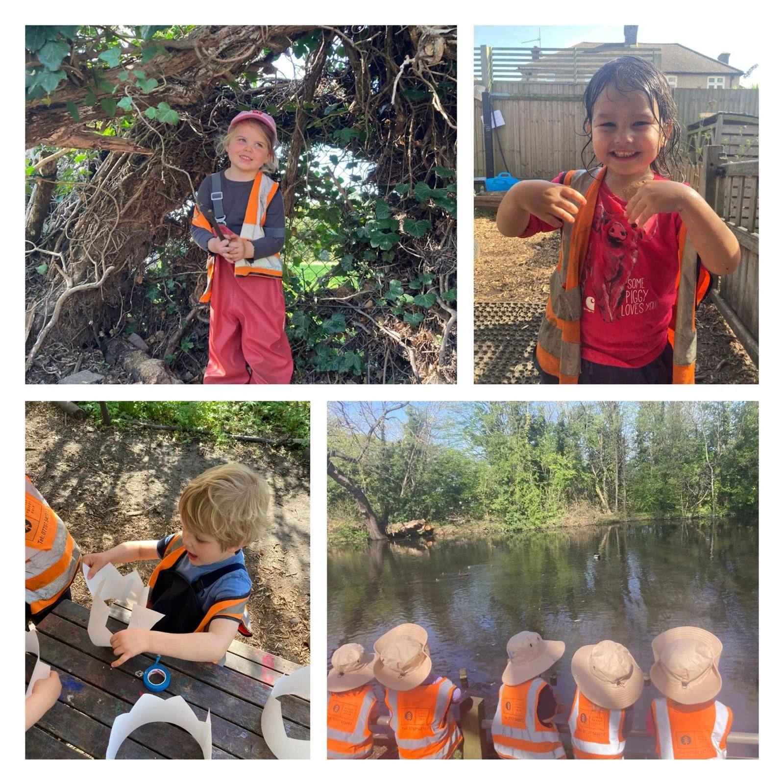 This week of holiday camp has been so fun! Everyone was buzzing with excitement after their Easter Holiday weekend and we kicked the week off with adventure walks up to Cannon Hill Common where we played parachute games, smelled tulips and visited 5 new little ducklings in the pond! After all that adventure everyone cooled down with some waterplay under the hose and ran and splashed under misty rainbows together.