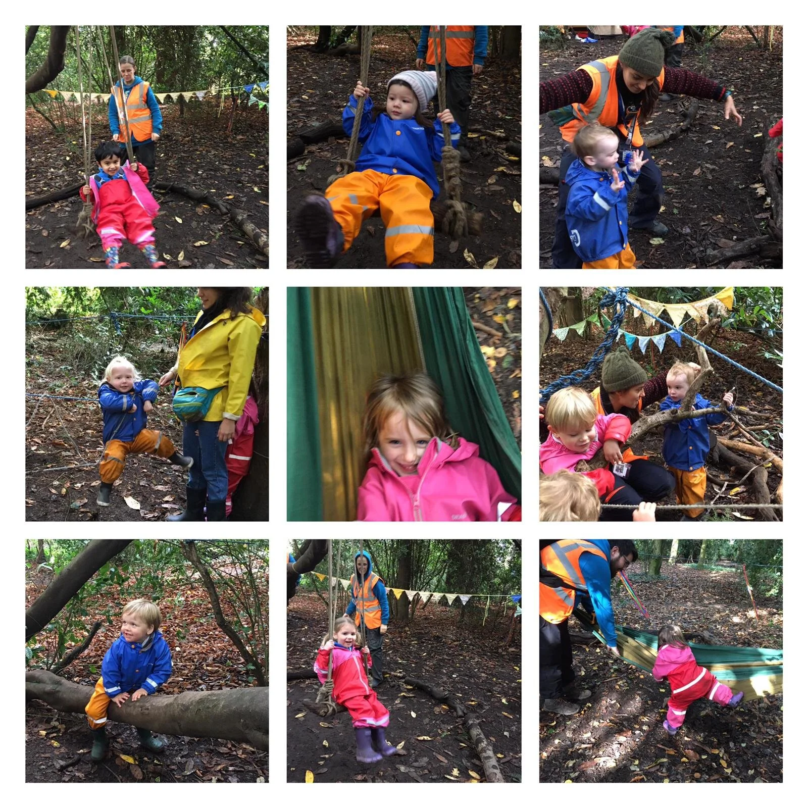With October sometimes being considered a spooky month, some of the practitioners have been setting up spider web obstacles in the forest using the ropes. Our Little Forest Folk-ers really enjoyed negotiating their way through the spider's web and trying their best to avoid Victoria, the spider whose web they were getting stuck in! She managed to capture a few children in her web who joined in as spiders helping her protect her web! The children could be heard giggling with laughter as they avoided the web and long arms of our hungry spider!