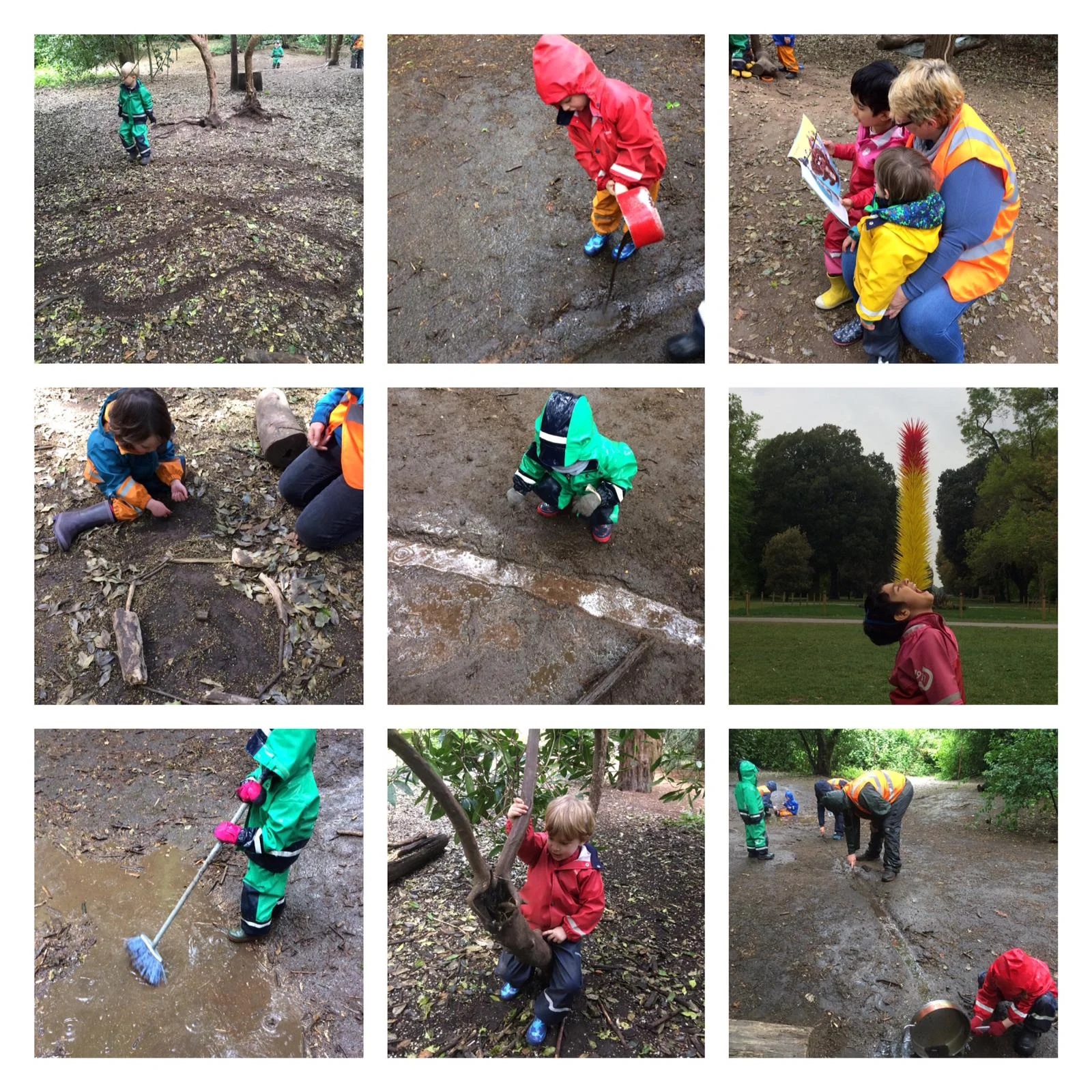 The weather has brought a LOT of rain this week and the children have delighted in the opportunities that this excess of water has presented. As the temperatures have been a bit warmer it has been easier to stay out in the rain and play and the children were delighted to see the puddles filling our base camp again. On Wednesday, it seemed to rain non-stop until after lunch and as the top of our site began to overflow with puddles, we began to dig channels down the side of the hills to help the water flow down into the valley. Armed with a broom, some children took turns to sweep the water down the channels and out of the site. Other children found pots and pans and collected the water, pouring it away down the channels, watching as it rushed quickly away.