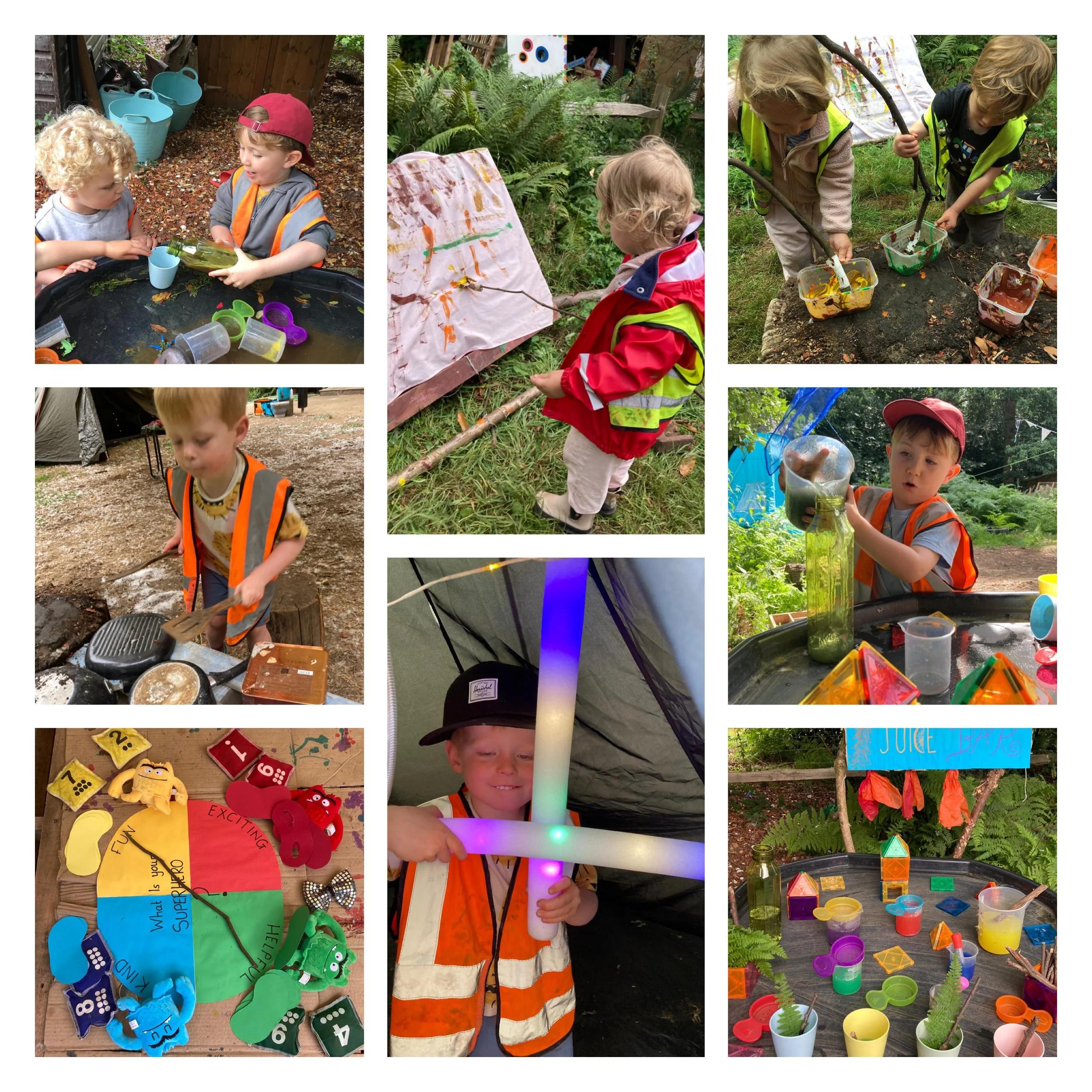 The fun continued later in the week as we swapped festivities in order to operate the superhero hotline in the garden. Soon we had lots of little superheroes running around putting out fires and rescuing animals as we all donned superhero costumes, made masks and worked together to make our little corner of the world a safer place, whilst having a great deal of fun, as you can see!