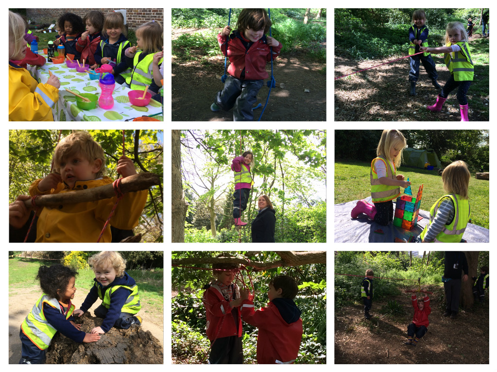 With the influence of the Holiday Camp we have added some new activities and challenges to our base camp. Our observant children were quick to notice these changes and this week have explored and rediscovered their forest with fresh eyes. As we mentioned last week, one addition to the site is our rope ladder. This activity is great for the children’s physical development, problem solving skills, coordination, as well as their communication and understanding. The older children showed determination and confidence when tackling the challenge, in doing so helped model to the other children how to climb the ladder. When the children first approached the activity the children were supported by an educator to ensure the ladder was steady and instructed on how it could be climbed. However, within a short space of time the children started to independently negotiate the swinging ladder and creatively found solutions to anchor the ladder to make their climbing easier. We are planning to develop these ideas further through the construction of some rope bridges and more challenging structures that we will build together with the children as their knot tying skills are amazing!!