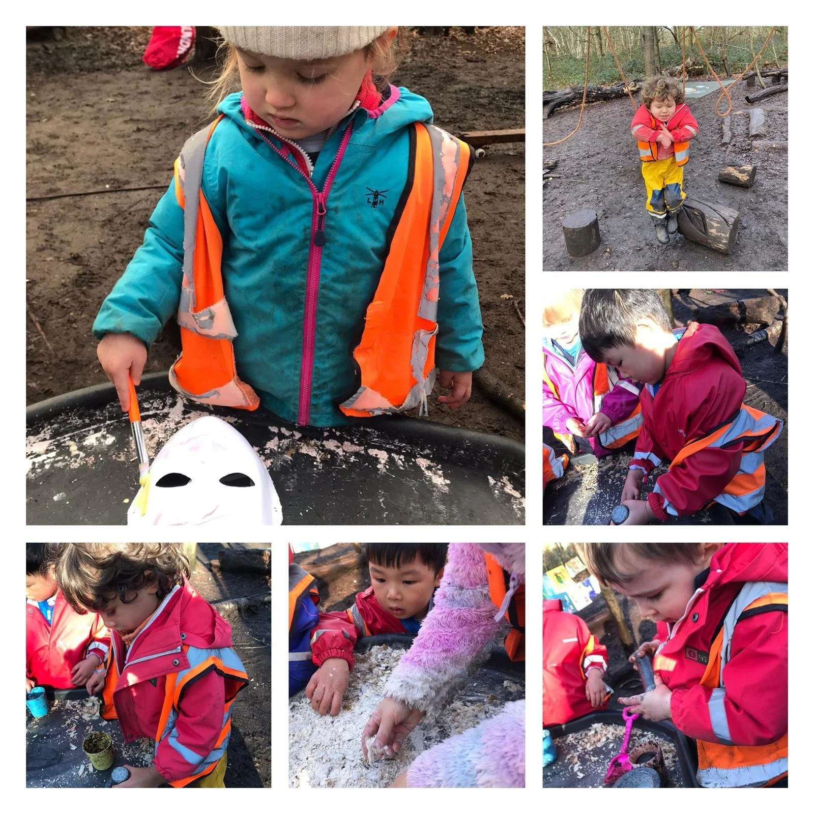 The rain may have made the sky grey, but it has certainly not dulled any colours in our play and fun in the forest!!