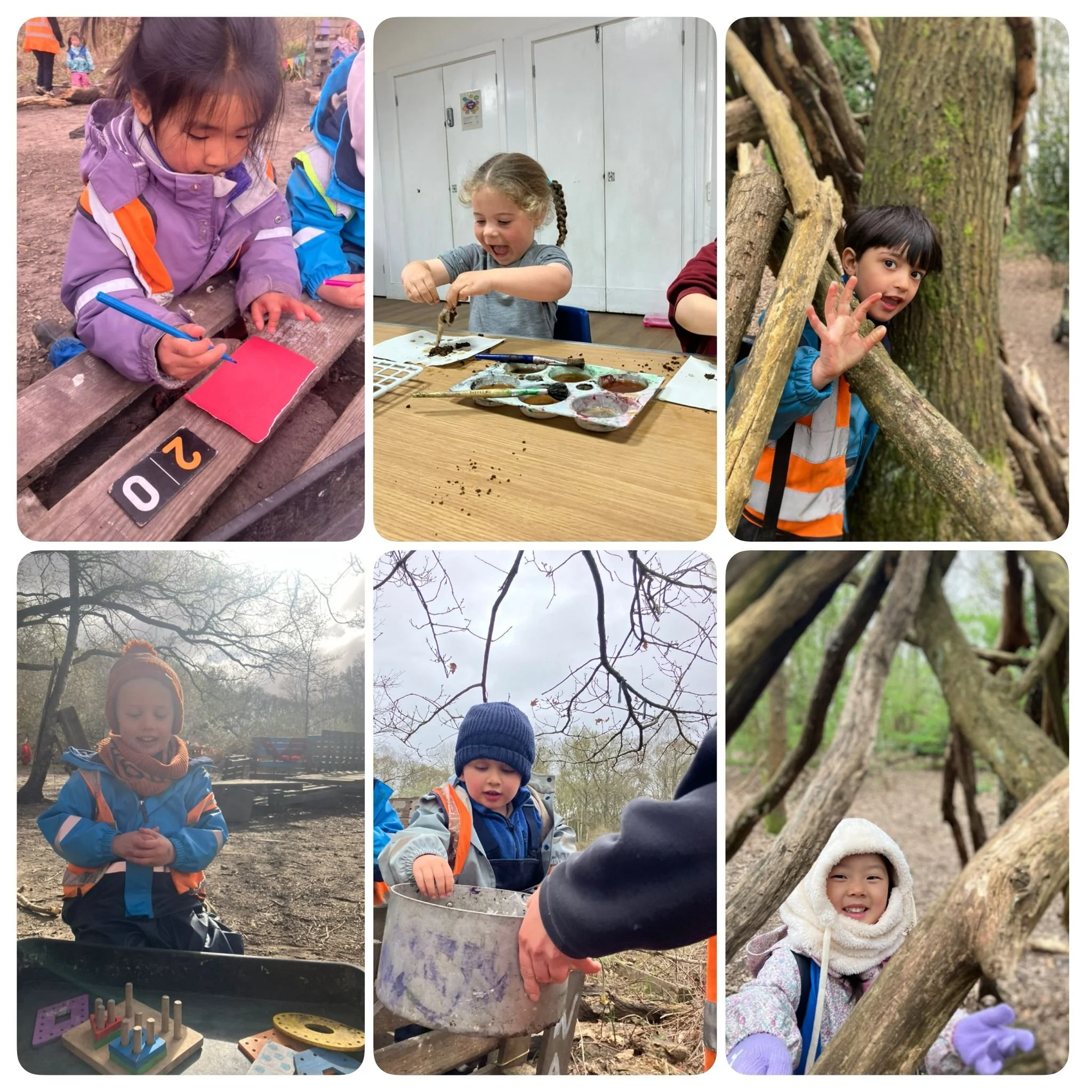 We’ve also been discussing our numbers this week. Counting pieces of puzzles and numerical patterns, searching for the right number to match our descriptions. We spoke about our ages and with our holiday campers we were able to connect the numbers to a higher value as we have some 5 and 6 year olds who have joined us! In the puzzle shapes, the number of holes in the centre of the piece equated to the number of sides it had. We were able to sort pieces into categories before placing them onto the correct structure. As spring is here, we’ve enjoyed looking out for rabbits on the meadow too. Searching for their famous white fluffy tail amongst the growing greenery. When looking, we also searched on the floor for insects and worms. To our amazement we also found a centipede. We tried to count how many legs it had but they were so small and moving so quickly! We learnt that a centipede has 100 legs!
