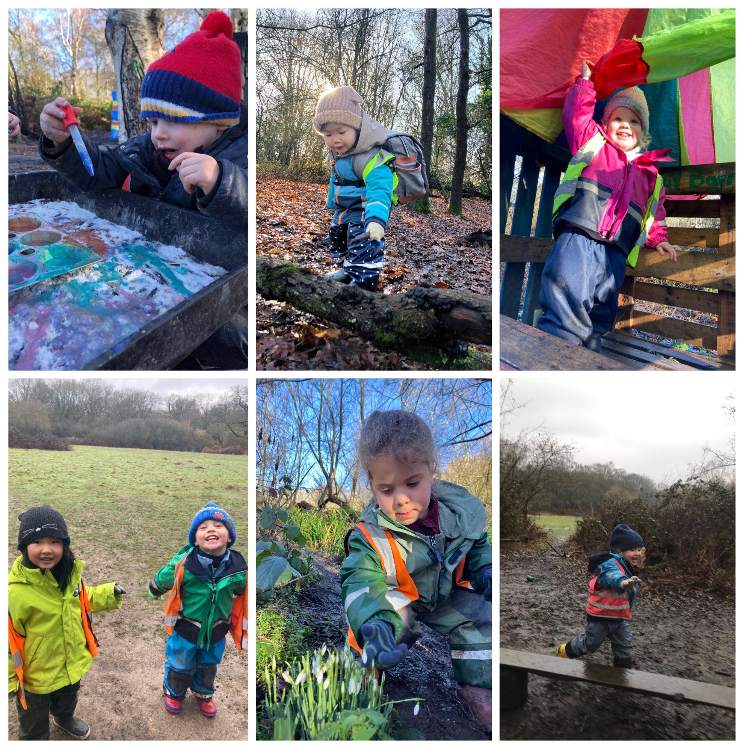 We have enjoyed some big adventure walks nearly every day and have given our Little Forest Folk-ers the responsibility of choosing which directions we are going in. Each time they have been able to recall spaces we are familiar with and have taken us on the right track. We went to a horse jumping arena for a picnic lunch, on a bird watching expedition to see how many different bird breeds we could find and also looked out for frogs as well as other animals around the forest. It creates wonderful conversations and widens everyone’s imaginations when we go on these walks, at the same time as showing how exciting the forest can be in all weathers!
