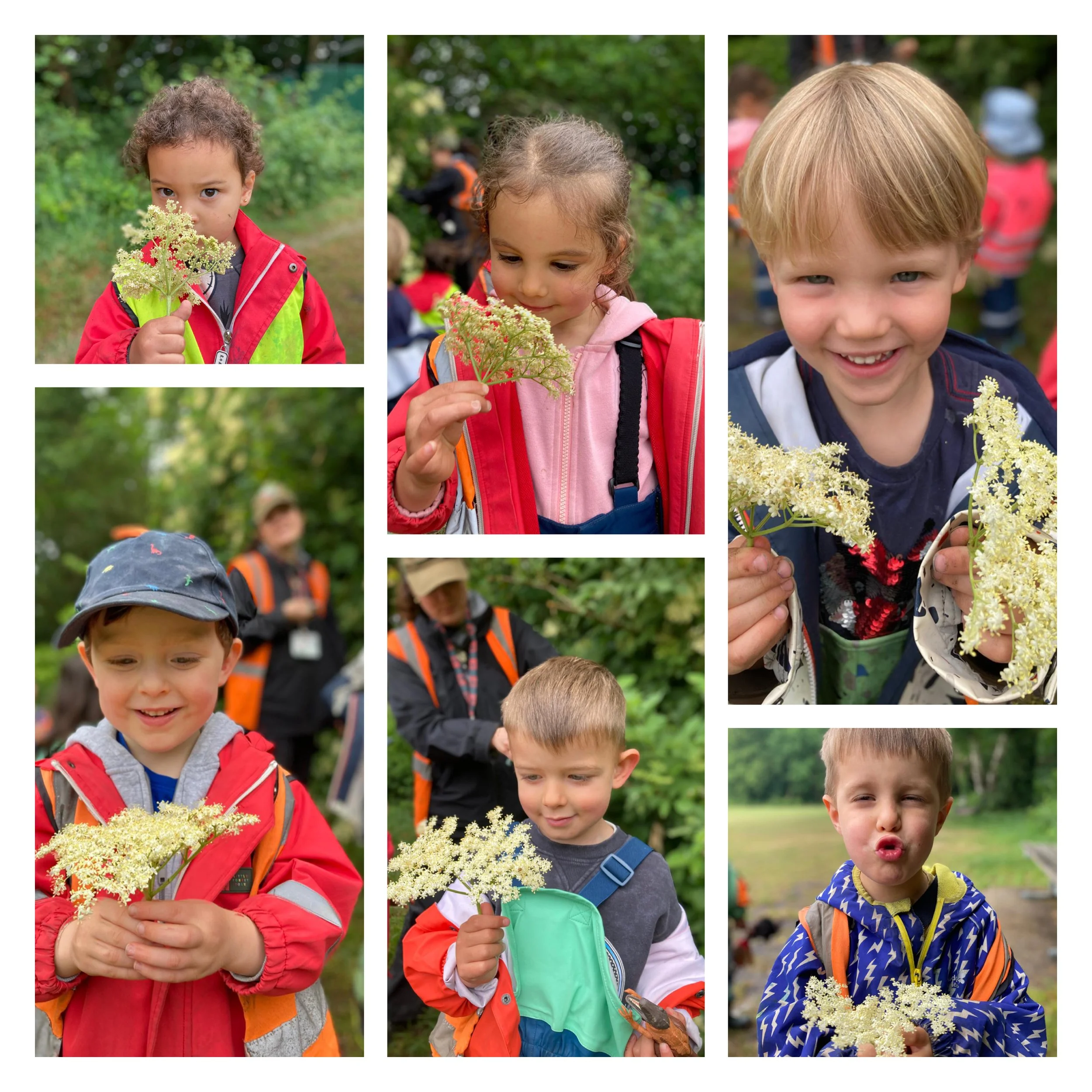 Later in the week, the forest buzzed with excitement as the children began a very special project: making elderflower cordial! With baskets in hand, they foraged for just the right blossoms, carefully measured sugar and water, and created their very own magical mix. After steeping for a couple of days, their efforts were bottled up and ready to bring home by the end of the week - a true taste of the forest!
