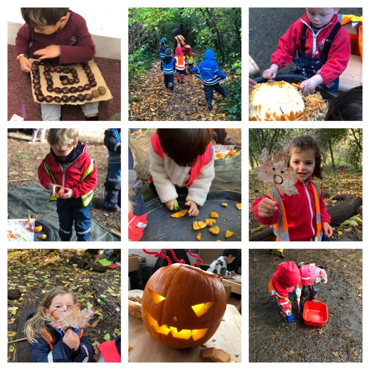 During our meadow exploration, we gathered shiny chestnuts and counted them all, practicing our counting skills while enjoying the treasures we found. On another adventure walk, we even discovered where the Gruffalo lives!
