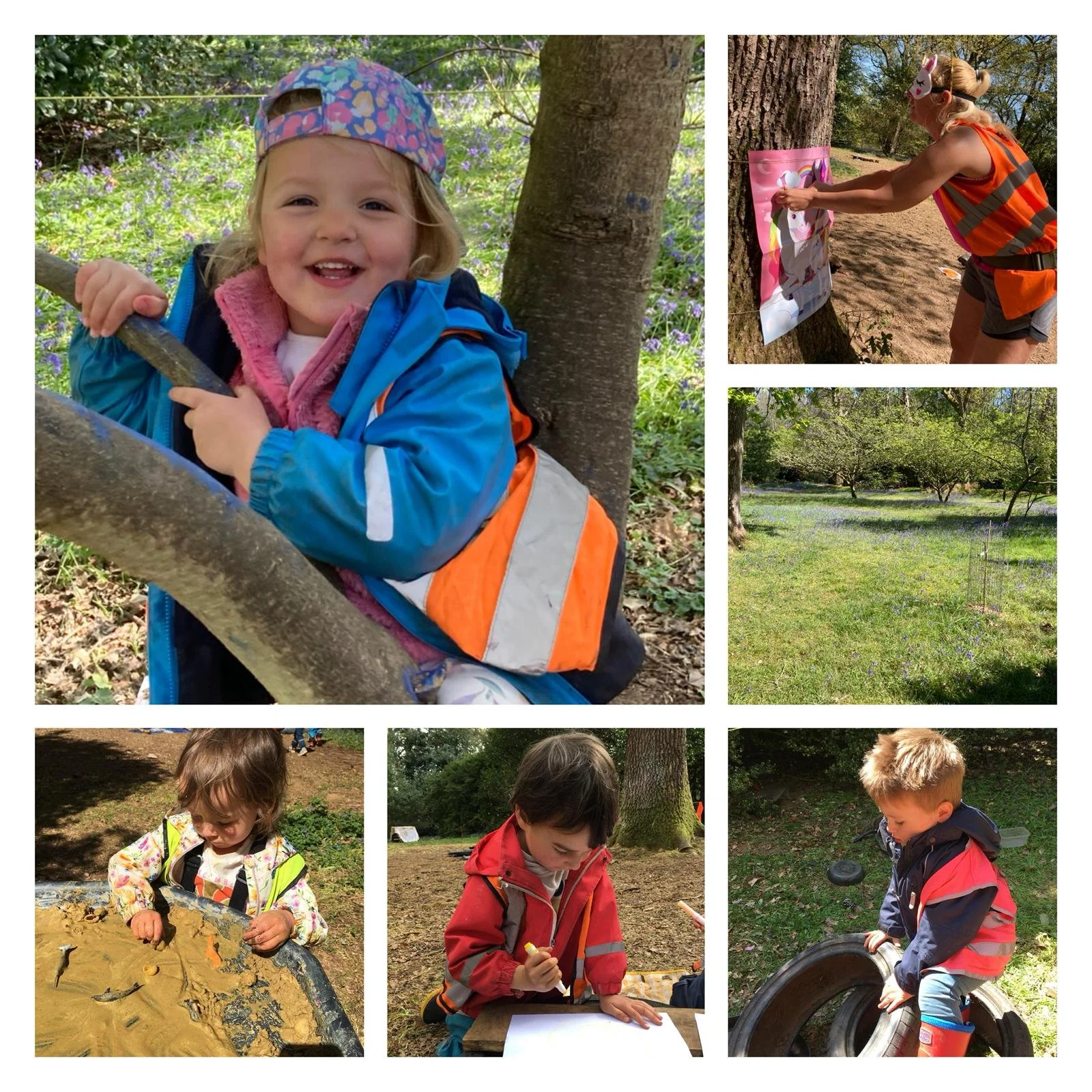 One day we explored the nature around us and how we can protect our wildlife. We thought about what different natural resources we could find in the forest and how to use them within our play. For example, we have recently been given some tree branches with leaves which we have cut down. We spoke about different types of trees and identifying leaves. We then explored a fine manipulative activity of hole punching leaves then threading twine around them to create a natural necklace! We also enjoyed doing this with pine cones too, tangling the pine cone up in coloured wool and making it into a pendant. These types of activities support our fine motor skills and hand and eye coordination, which strengthens our hand muscles and supports our early pre-writing skills. We also had loads of mud, leaves, petals and water in our mud kitchen as well where we created mud soups, pies and cakes - perfect for our gross motor development and wrist rotation!