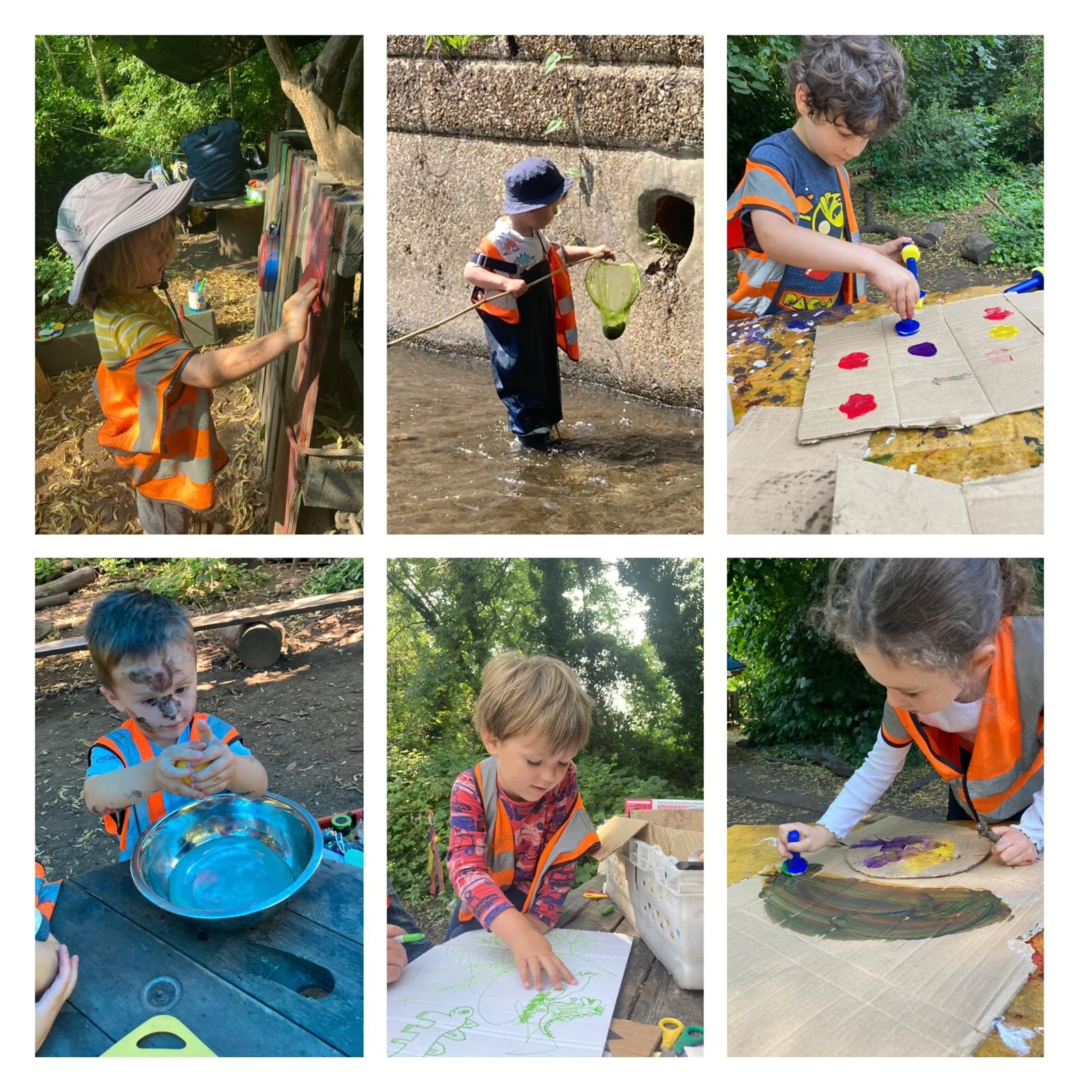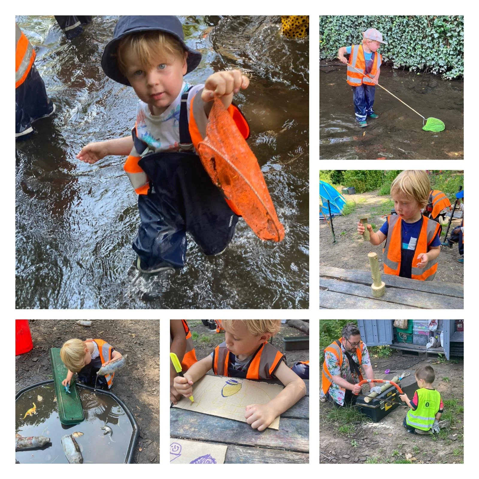 This week we made sure to keep ourselves really cool and safe in the forest in this glorious sunshine. We are very lucky here at Twickenham to have access to the River Crane, so we put on our wellies and went for a few lovely walks upstream this week. The children took their nets to do some litter picking along the way. We also noticed that some blackberries were starting to ripen along the riverbank, and the butterflies and damselflies loved dancing above our heads.