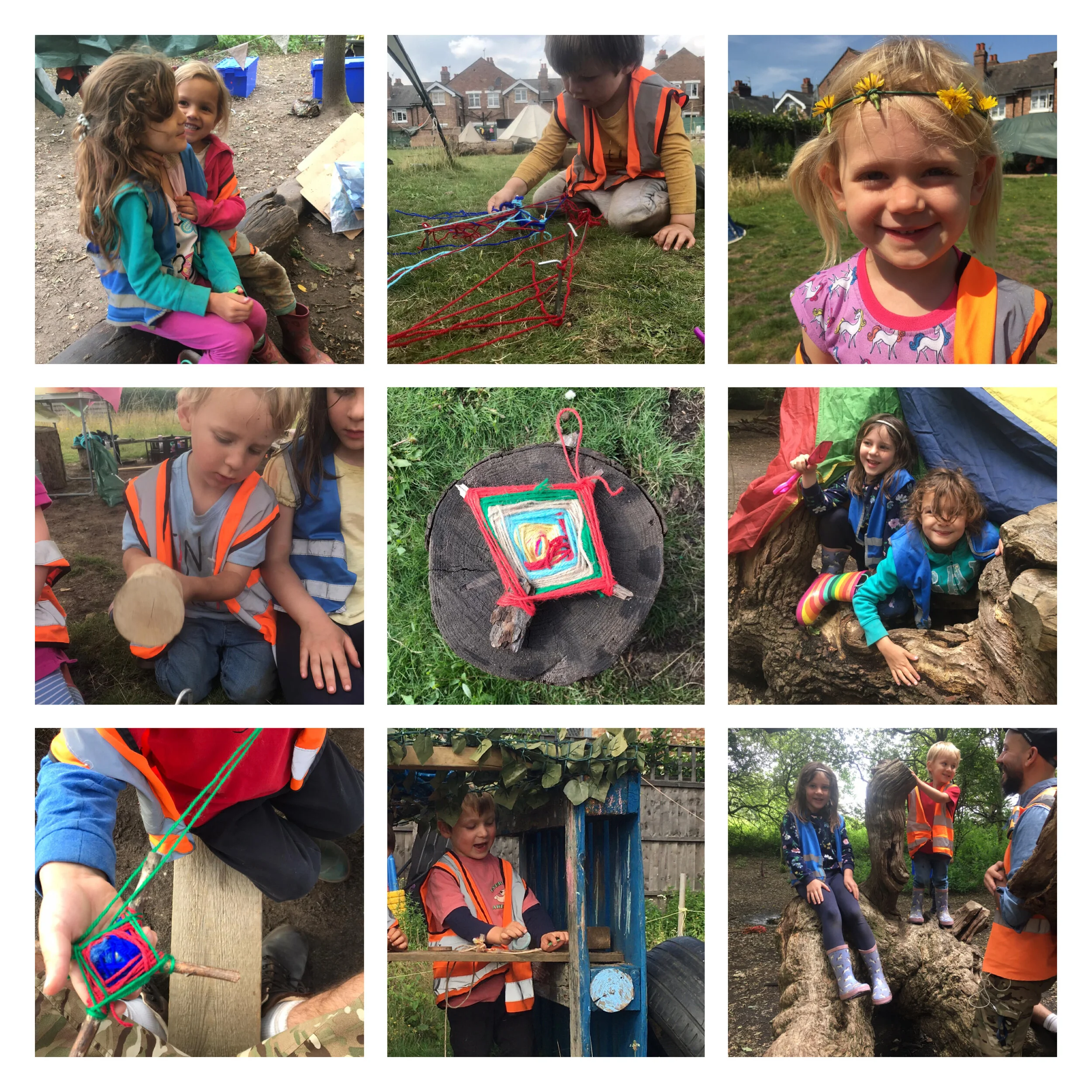This week, we have also been supporting children moving on to big school, to make their own traditional Mexican decorations, called God Eyes. We have reinterpreted parts of the tradition so that the woven string element represents parts of forest school life, so children can remember the awesome time they had here. After joining two crossed sticks, the weaving can start with a helpful song made by one child that goes “I twist it, you turn it, I twist it, you turn it”. As an example, Red twine represents being on Red Team, the blue hues represent the sky and the lake, the yellow is the sun, the green is the forest and the trees, and the traditional twine is the mud! These can then be hung up or kept as treasures and we hope that some parents can help children reflect on these great times in magical surroundings.
