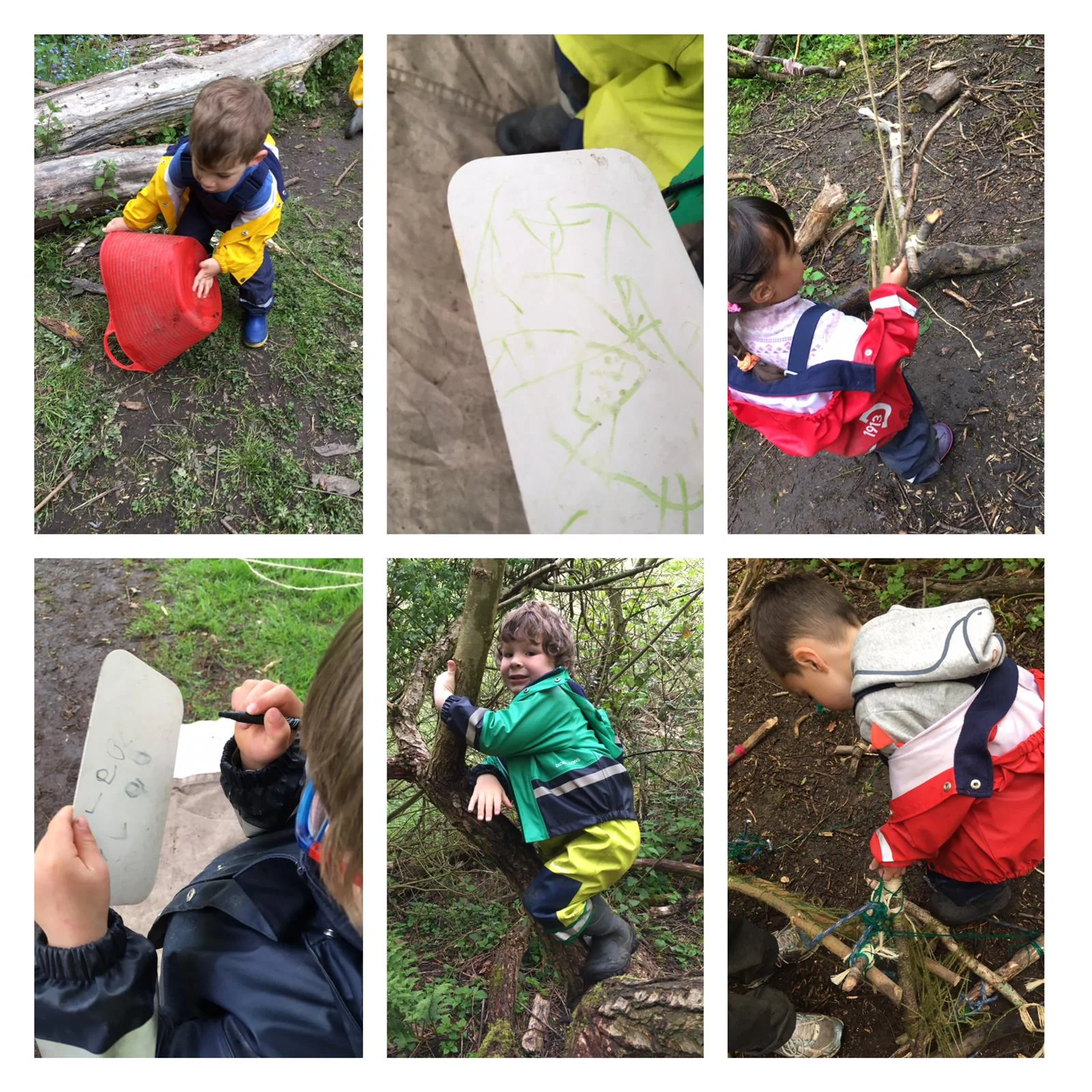 With the leaves on the trees fully opened in anticipation of the summer days that wait just around the corner, the children at Little Forest Folk have been noticing the return of the mini beast families that have started to enjoy the new leaves. We have spotted lots of little caterpillars suspended in mid-air, hanging from their silky threads as they chew over their plans for the day.