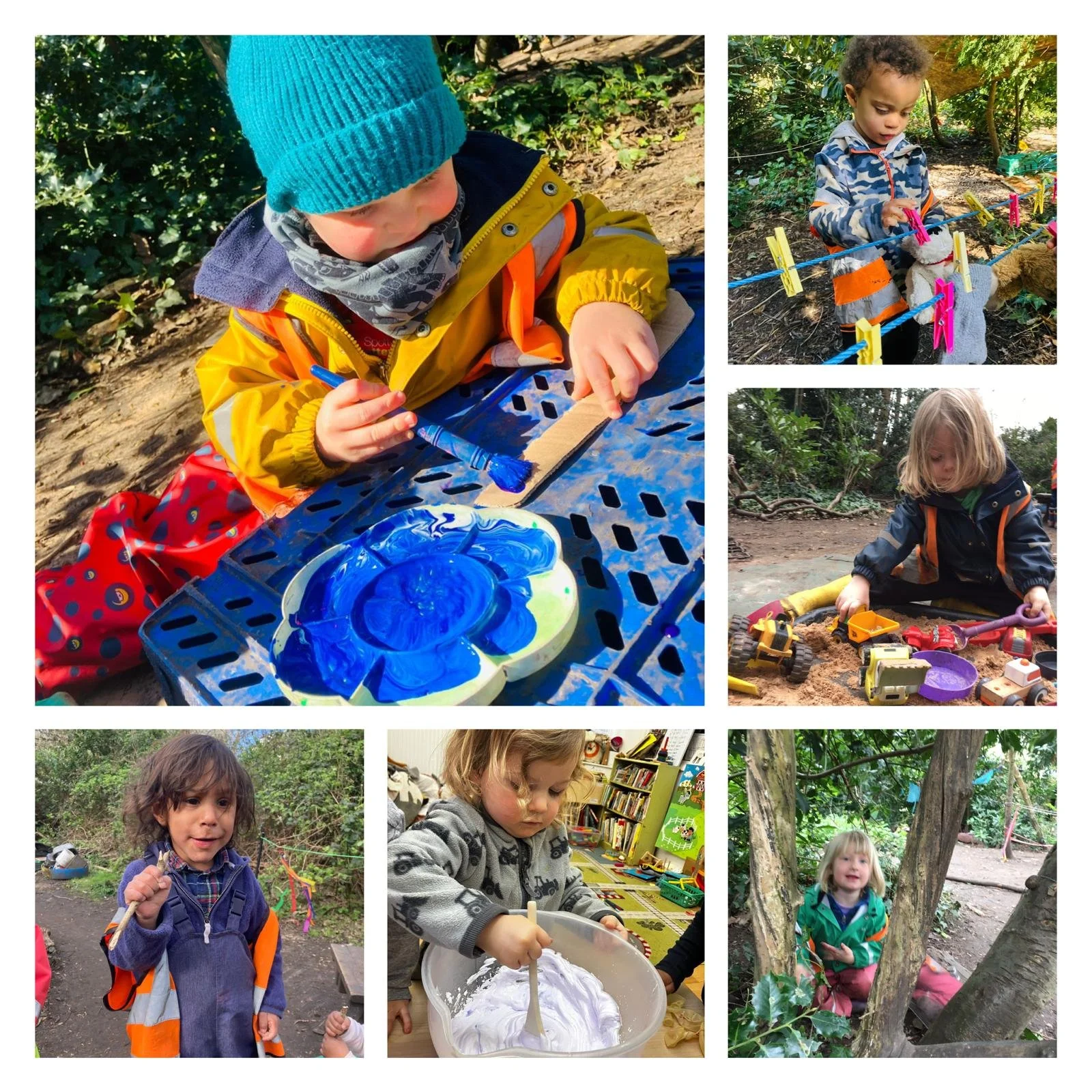 At the start of the week we had some clay available and using sticks, pine cones, toy frogs and dinosaurs etc we made foot prints and marks in the clay, which in-turn looked like fossils.